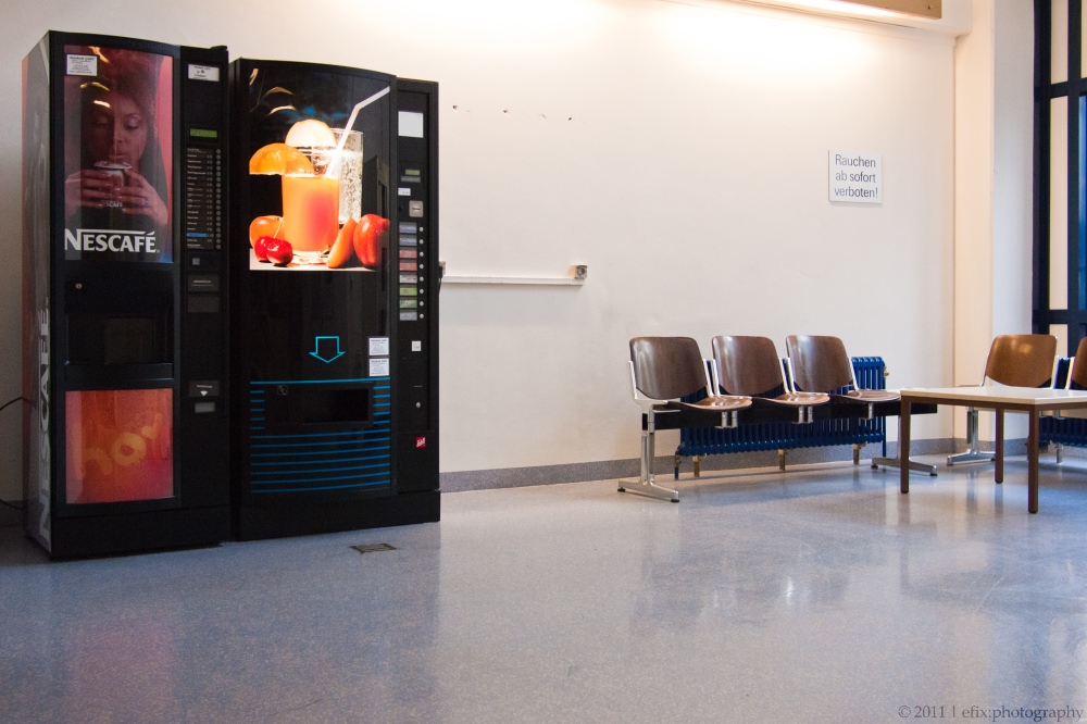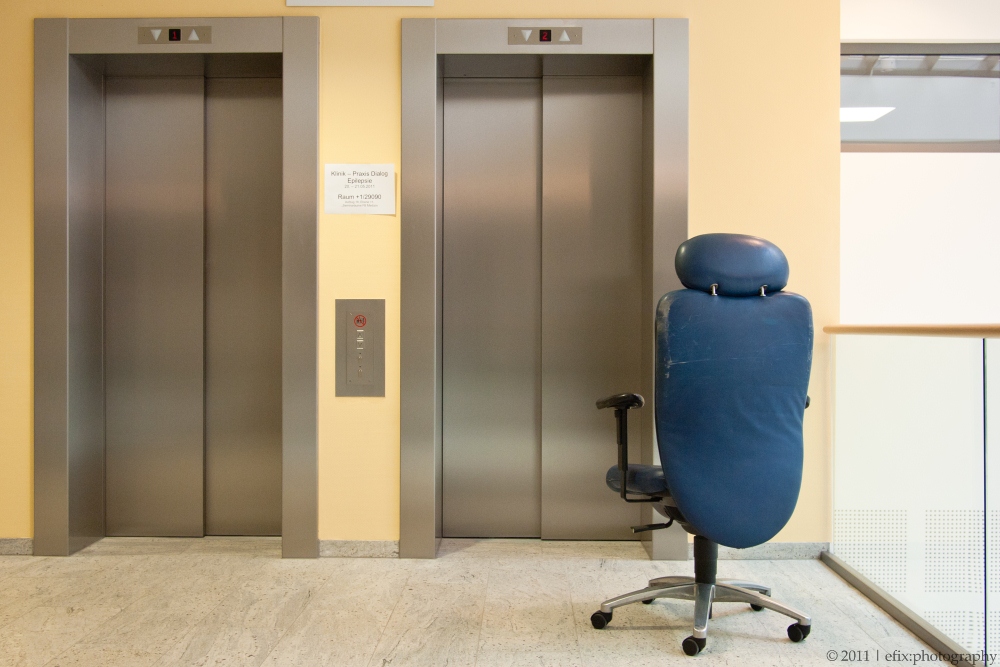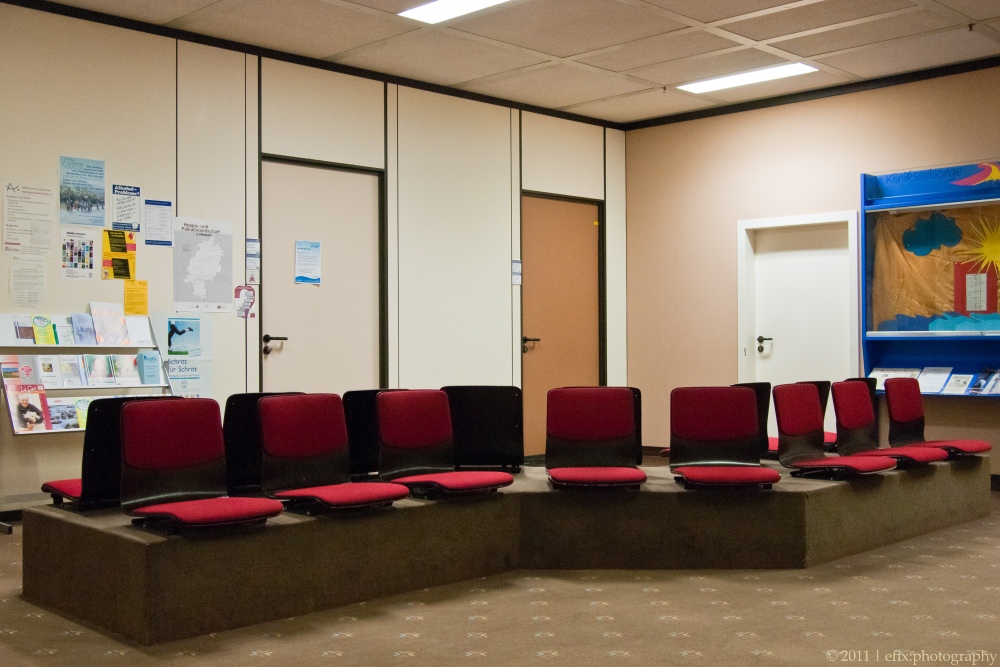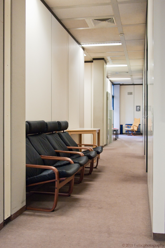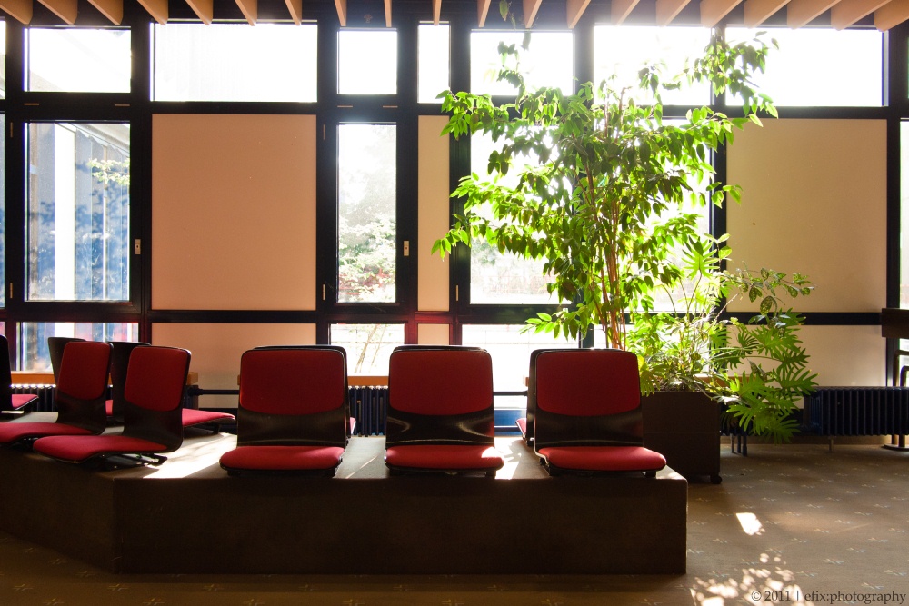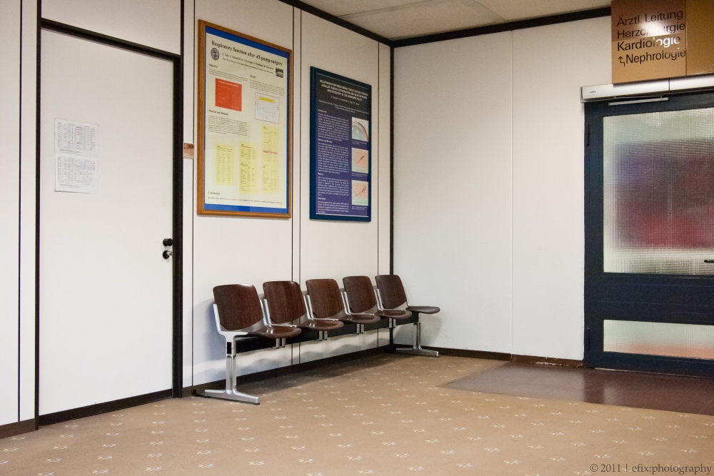While revisiting the hospital yesterday, I used the opportunity to take some architectural impressions of the hospital’s interior. The hospital consists of two parts: and old section and a new section, directly adjacent to the former, but built very recently (and partially still under construction). The emergency station is in the new section, and from there I wandered through the corridors up to the main entrance hall in the old section.